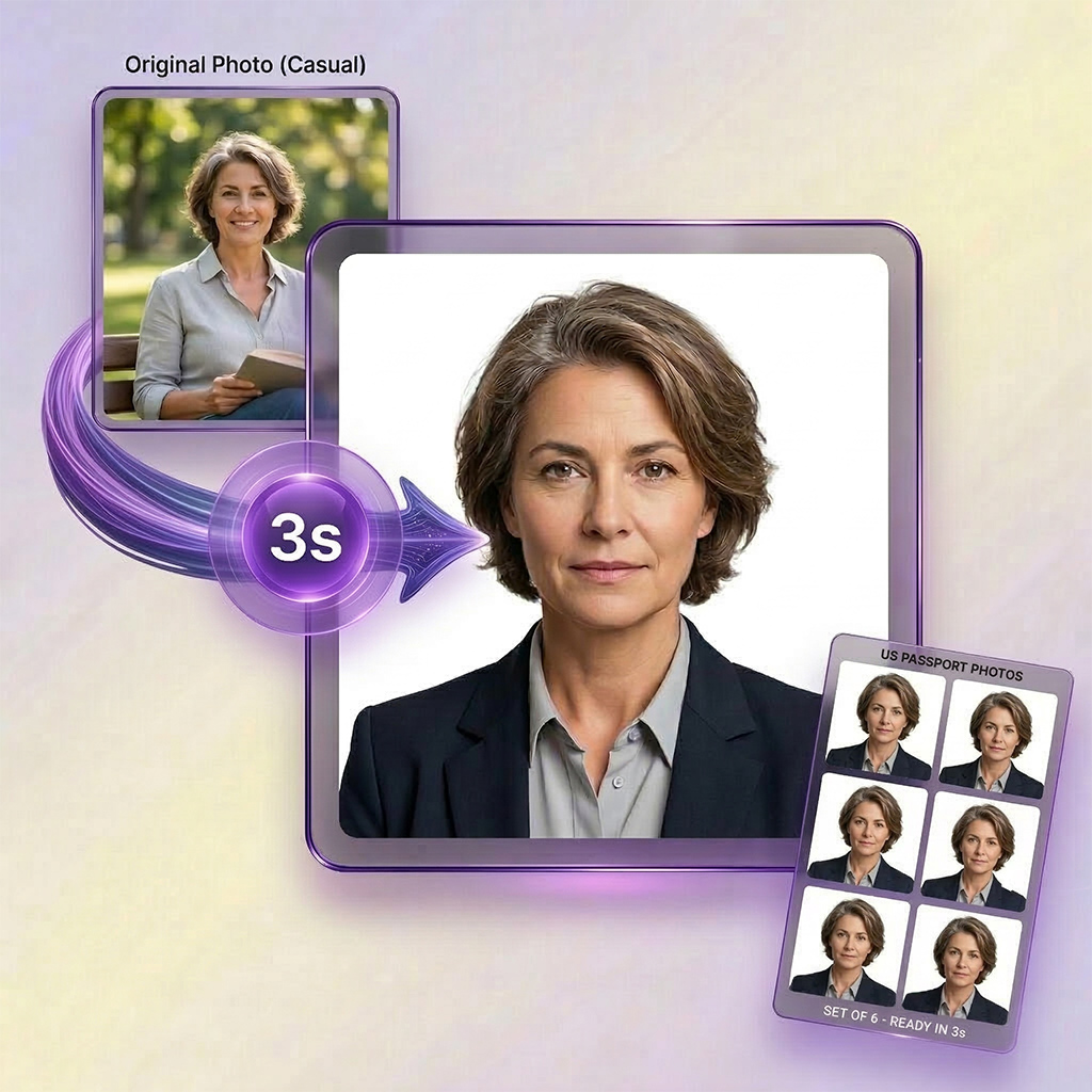 Skip the drugstore. Upload any photo and our AI handles the compliance, background, and sizing instantly.
